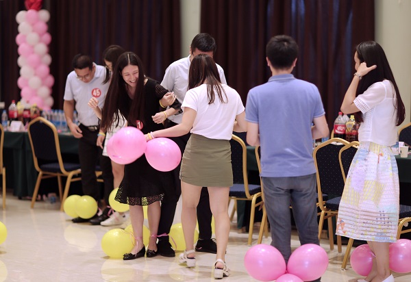 活动通过直呼其名、三观挑战、时装大秀、气球大战、银河相会等环节展开,热烈而有趣。大家在欢声笑语中考验了默契程度,增加了沟通互动,拉近了彼此的距离。还有几位青年进行了才艺展示,高亢的歌喉,优美的舞姿,以及精美的烘焙小点心厨艺展示,带动了全场青年的热情,会场处处洋溢着欢乐氛围,绽放着青春活力,大家沉浸在美好与甜蜜的气氛中。最后,男嘉宾选定一位女嘉宾进入寻找EC环节,两人骑一辆自行车,到室外寻找工作人员事先准备好的30张CMEC标识,半小时内,获得标识多者为胜。